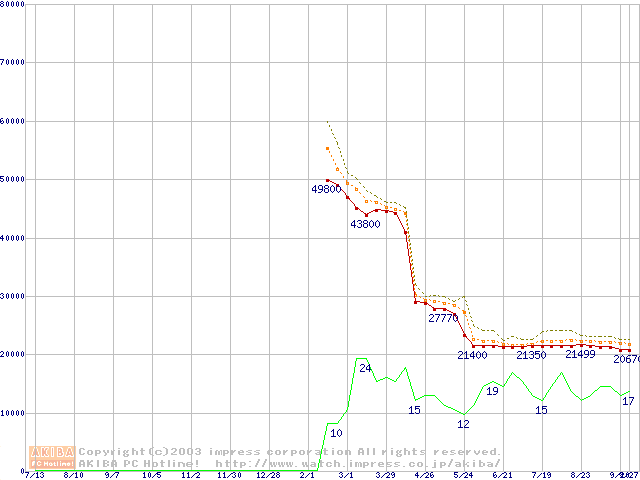 Athlon XP 2800+ (2.08GHz) リテールパッケージの価格推移