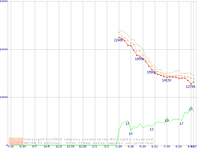 Barracuda 7200.7 (7200rpm,UltraATA/100,2MB,80GB/Platter,FDB)の最安値推移