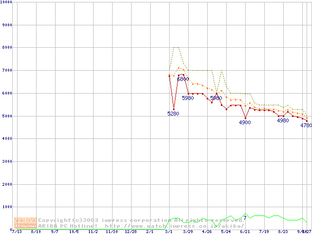 C3 1.0A GHz (Nehemiah) リテールパッケージの価格推移