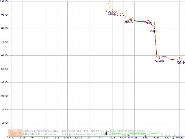 Socket 603 (micro-PGA,FSB 400MHz,L2 512KB,Prestonia)の最安値推移