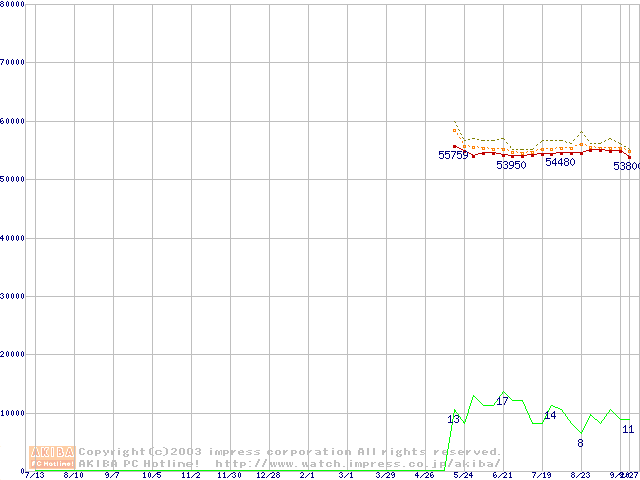 Socket A (OPGA,FSB 400MHz,L2 512KB,Barton)の最安値推移