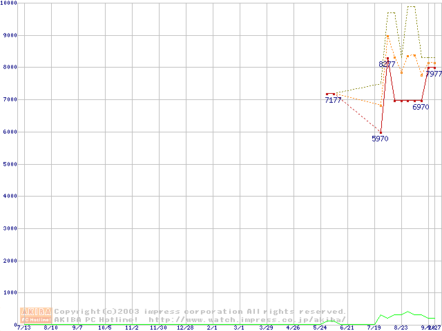 PC2700(DDR333) DDR SDRAM DIMM ECC対応の最安値推移