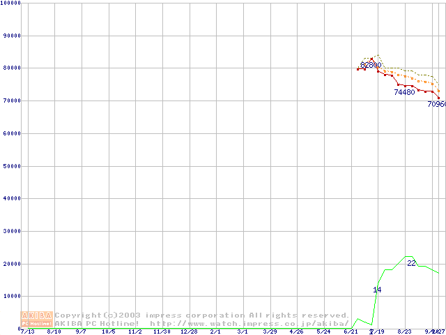 Socket 478 (micro-PGA,FSB 800MHz,L2 512KB,Hyper-Threading,Northwood)の最安値推移