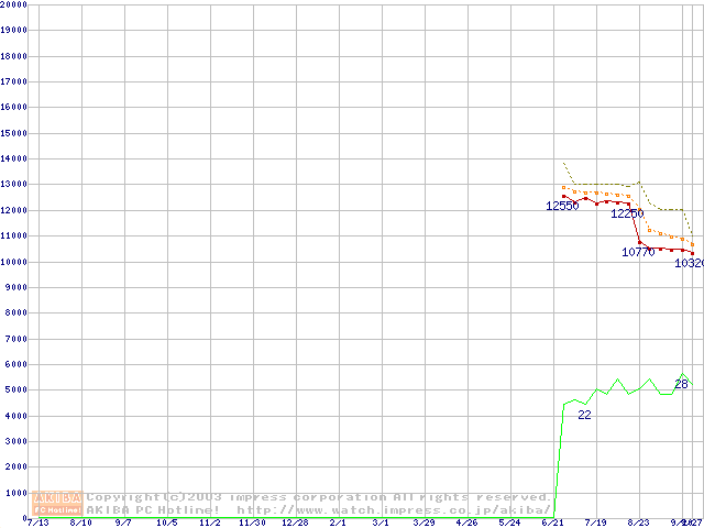 Socket 478 (micro-PGA,FSB 400MHz,L2 128KB,Northwood)の最安値推移