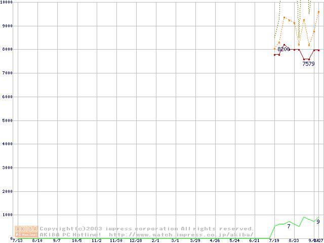 PC4000(DDR500) DDR SDRAM DIMMの最安値推移