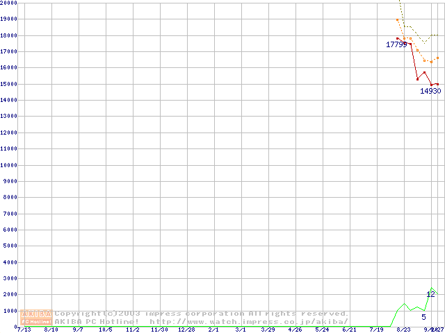 Travelstar 5K80 (9.5mm,5400rpm,UltraATA/100,8MB,FDB,40GB/Platter)の最安値推移