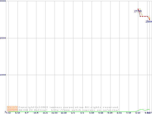 Travelstar 5K80 (9.5mm,5400rpm,UltraATA/100,8MB,FDB,40GB/Platter)の最安値推移