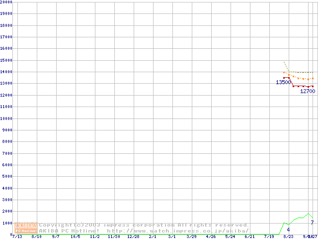 MKシリーズ (9.5mm,4200rpm,8MB,FDB,40GB/Platter)の最安値推移