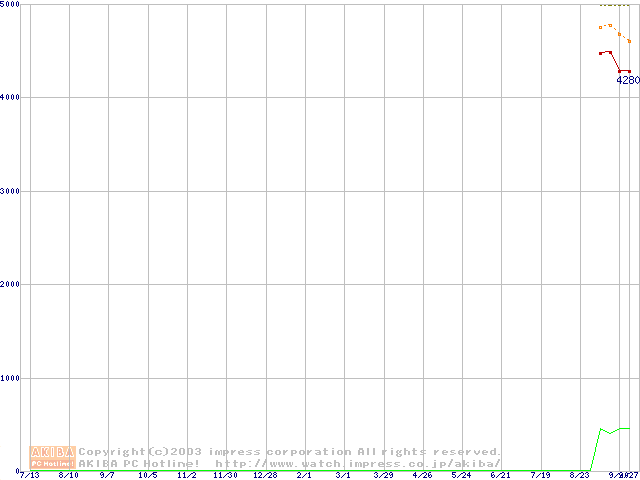 Socket A (OPGA,FSB 266MHz,L2 64KB,Applebred)の最安値推移