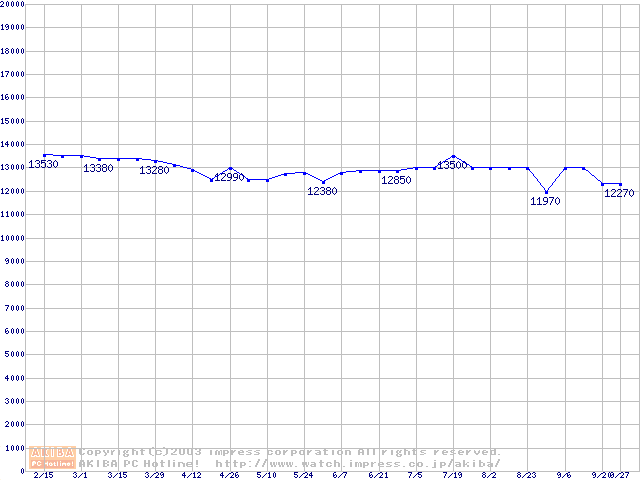 | [↓次グラフ]: | Travelstar DK23EA (9.5mm,4200rpm,UltraATA/100,512KB)の最安値推移 |