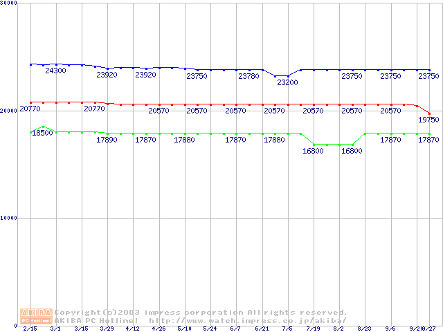 | [↑前グラフ]: | Socket 478 (micro-PGA,FSB 400MHz,L2 128KB,Willamette)の最安値推移 |