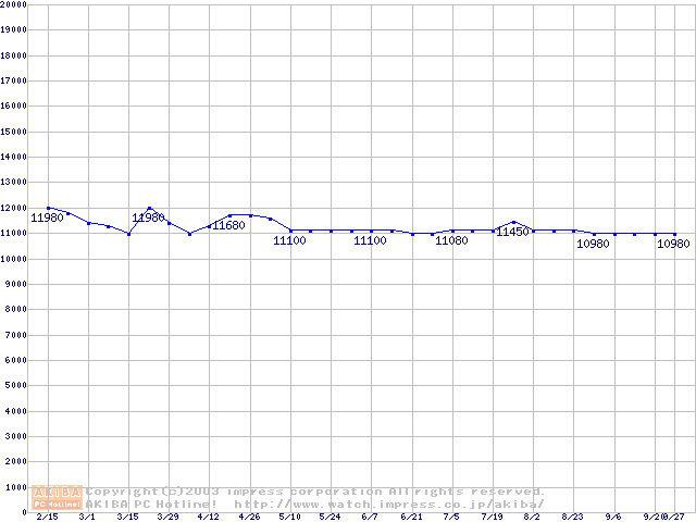 | [↑前グラフ]: | Socket 370 (FC-PGA2,FSB 133MHz,L2 256KB,Tualatin)の最安値推移 |