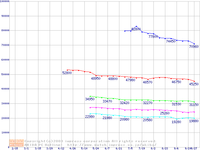 | [↓次グラフ]: | Socket 478 (micro-PGA,FSB 533MHz,L2 512KB,Hyper-Threading,Northwood)の最安値推移 |
