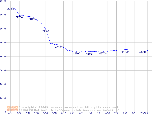 | [↑前グラフ]: | Socket 478 (micro-PGA,FSB 800MHz,L2 512KB,Hyper-Threading,Northwood)の最安値推移 |