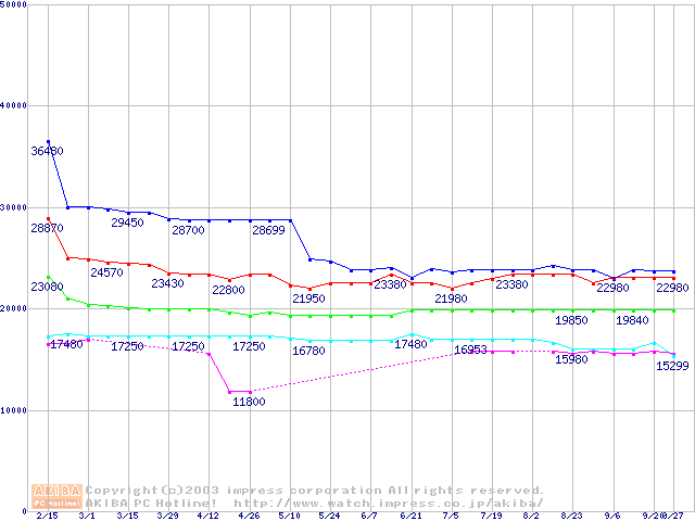 | [↑前グラフ]: | Socket 478 (micro-PGA,FSB 533MHz,L2 512KB,Northwood)の最安値推移 |