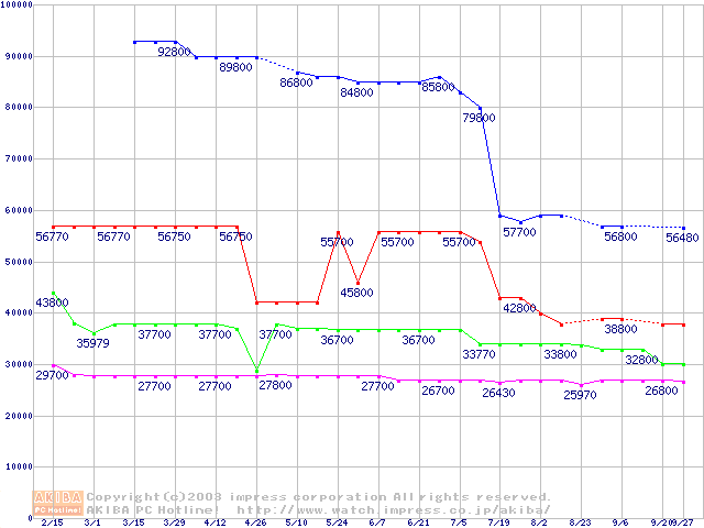 | [↓次グラフ]: | Socket 478 (micro-PGA,FSB 400MHz,L2 128KB,Northwood)の最安値推移 |