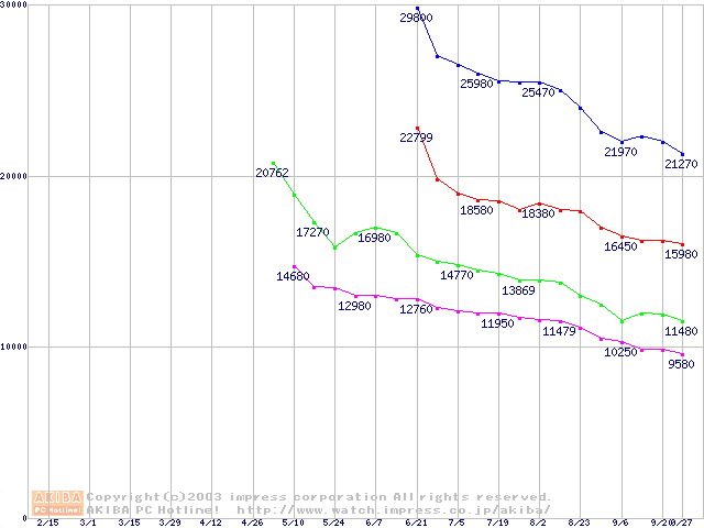| [↓次グラフ]: | MaXLine Plus II (7200rpm,8MB,UltraATA/133,FDB)の最安値推移 |