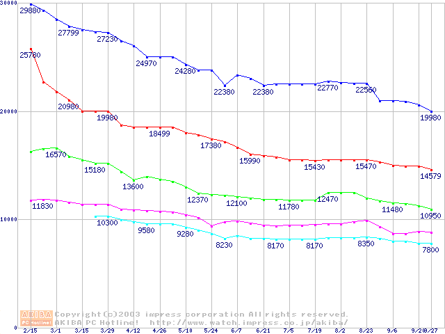 | [↑前グラフ]: | MaXLine Plus II (7200rpm,8MB,UltraATA/133,FDB)の最安値推移 |