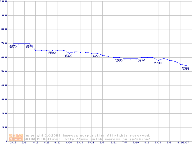 | [↑前グラフ]: | Barracuda 5400.1 (5400rpm,UltraATA/100,2MB,FDB)の最安値推移 |