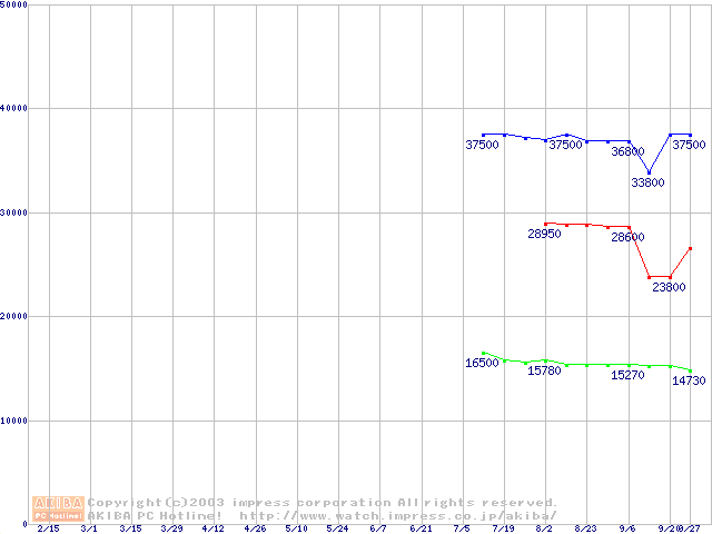 | [↓次グラフ]: | WD Caviar(Special Edition) (7200rpm,UltraATA/133,8MB)の最安値推移 |