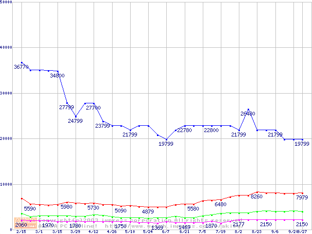 | [↑前グラフ]: | PC2700(DDR333) DDR SDRAM DIMM ECC対応 Registeredタイプの最安値推移 |
