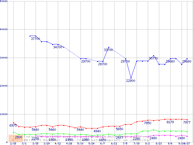 | ※製品名をクリックすると個別のグラフを表示します ※点線部は販売店が確認できなかった、または調査データがないことを示します | |