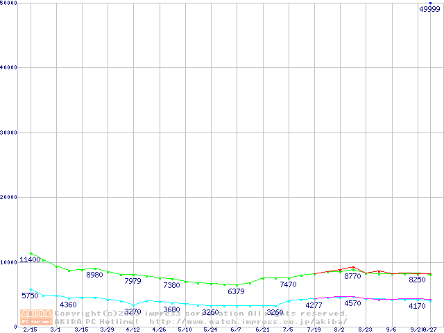 PC3200(DDR400) DDR SDRAM DIMMの最安値推移
