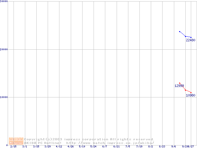 | [↓次グラフ]: | PC2700(DDR333) DDR SDRAM DIMMの最安値推移 |