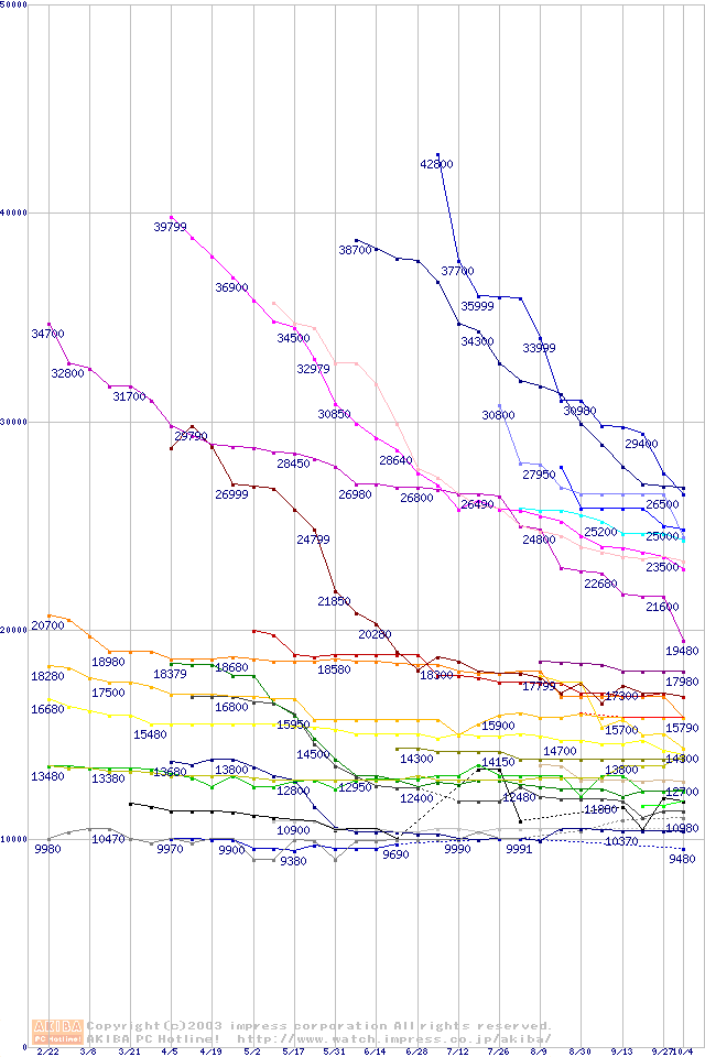 2.5インチHDD主要製品の最安値推移