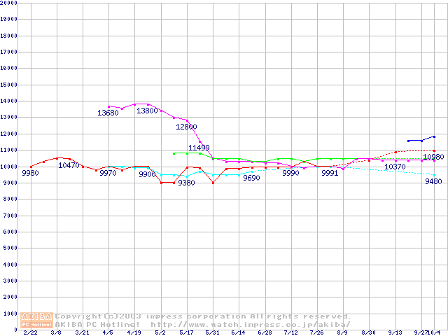 | [↓次グラフ]: | 2.5インチHDD 30GB~40GB未満(9.5mm厚)の最安値推移 |