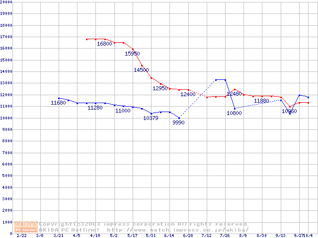 | [↑前グラフ]: | 2.5インチHDD 20GB~30GB未満(9.5mm厚)の最安値推移 |