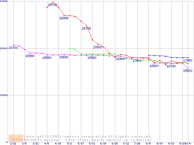 | [↓次グラフ]: | 2.5インチHDD 80GB以上(9.5mm厚)の最安値推移 |