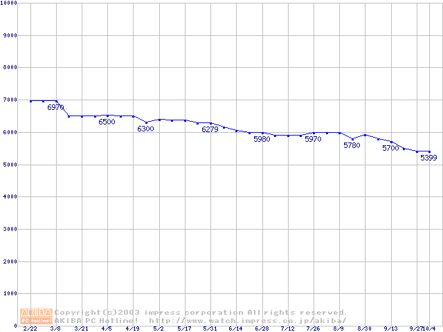 HDD 20GB~30GB未満(5400rpmクラス)の最安値推移