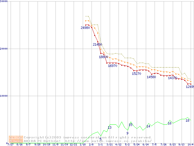 DiamondMax 16 (5400rpm,UltraATA/133,2MB,80GB/Platter,FDB)の最安値推移