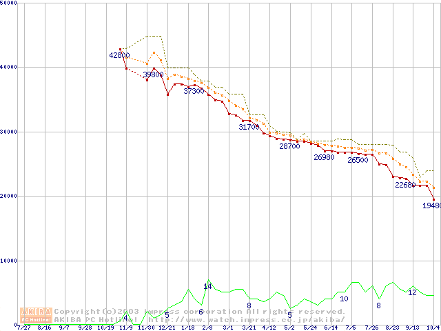 2.5インチHDD主要製品の最安値推移