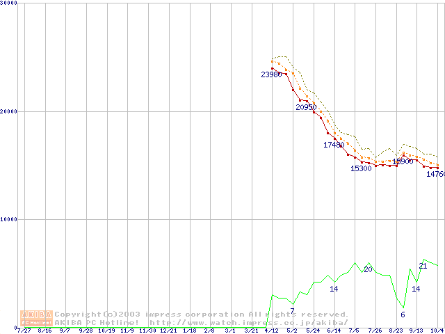 Barracuda 7200.7 (7200rpm,UltraATA/100,8MB,80GB/Platter,FDB)の最安値推移