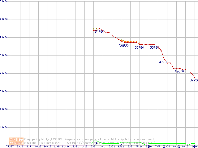 Xeon 2.80GHz(FSB533) リテールパッケージ(1U用)の価格推移