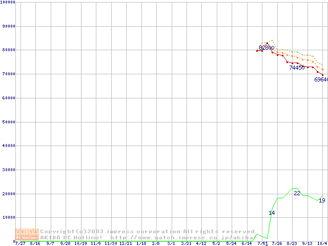 Socket 478 (micro-PGA,FSB 800MHz,L2 512KB,Hyper-Threading,Northwood)の最安値推移