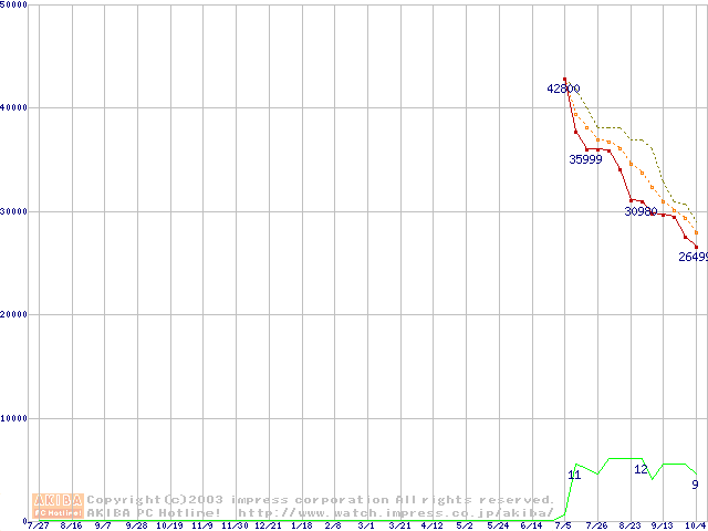 Travelstar 7K60 (9.5mm,7200rpm,UltraATA/100,8MB,FDB,30GB/Platter)の最安値推移