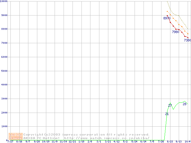 Deskstar 7K250 (7200rpm,UltraATA/100,FDB)の最安値推移
