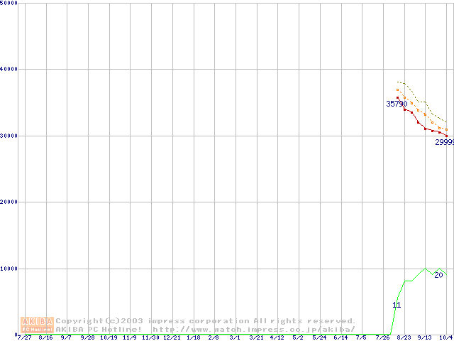 Deskstar 7K250 (7200rpm,UltraATA/100,FDB)の最安値推移