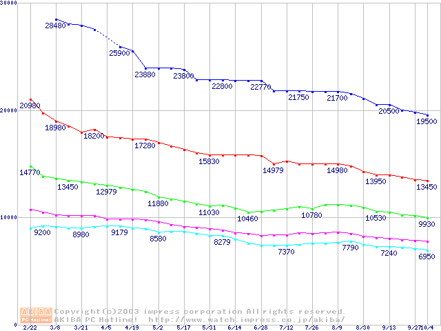 | [↑前グラフ]: | DiamondMax Plus 9 (7200rpm,8MB,UltraATA/133,FDB)の最安値推移 |