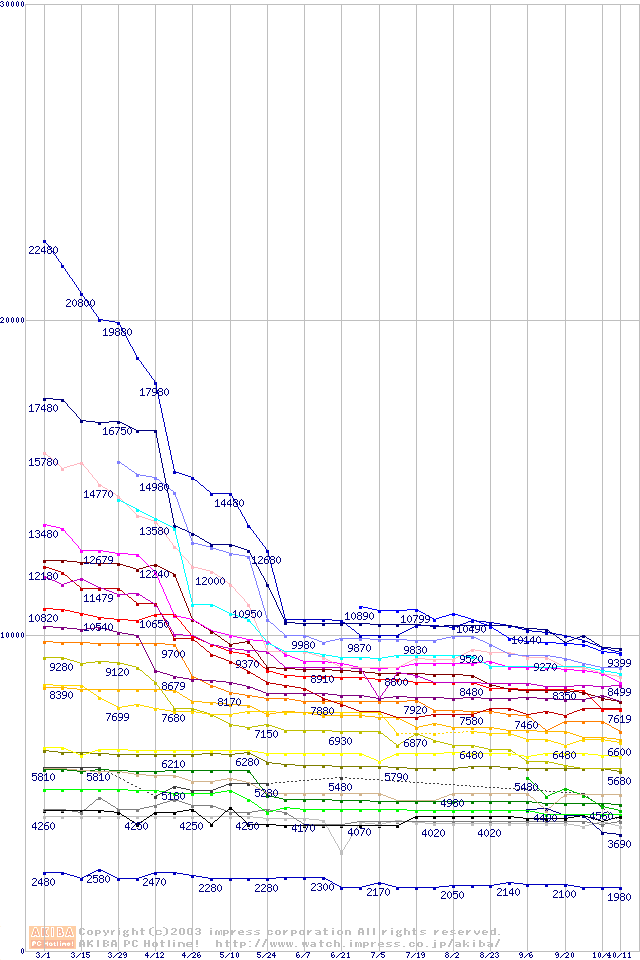 CPU主要製品の最安値推移