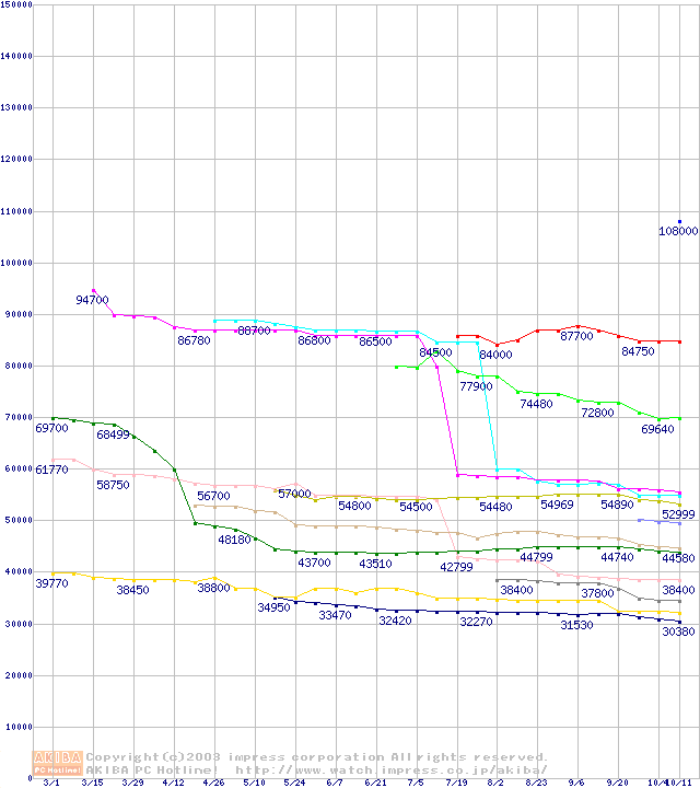 Socket A・FSB 266MHzの最安値推移