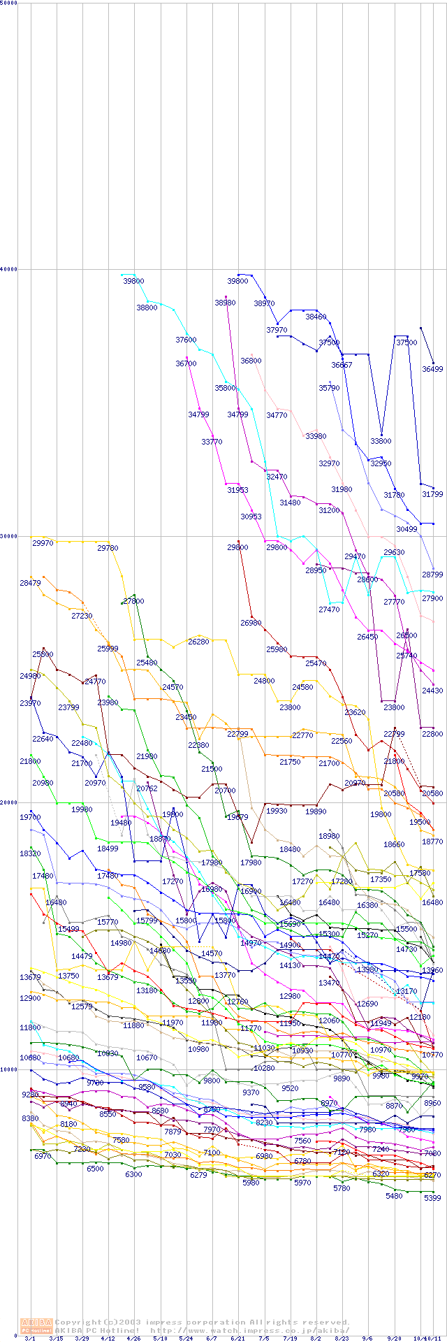 ※製品名をクリックすると個別のグラフを表示します ※点線部は販売店が確認できなかった、または調査データがないことを示します |