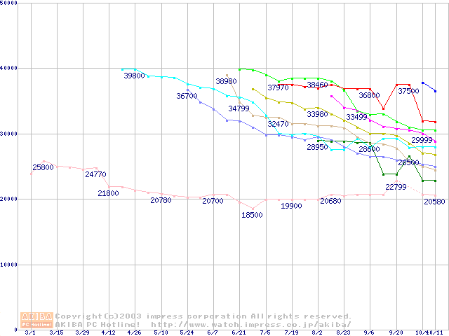 HDD主要製品の最安値推移