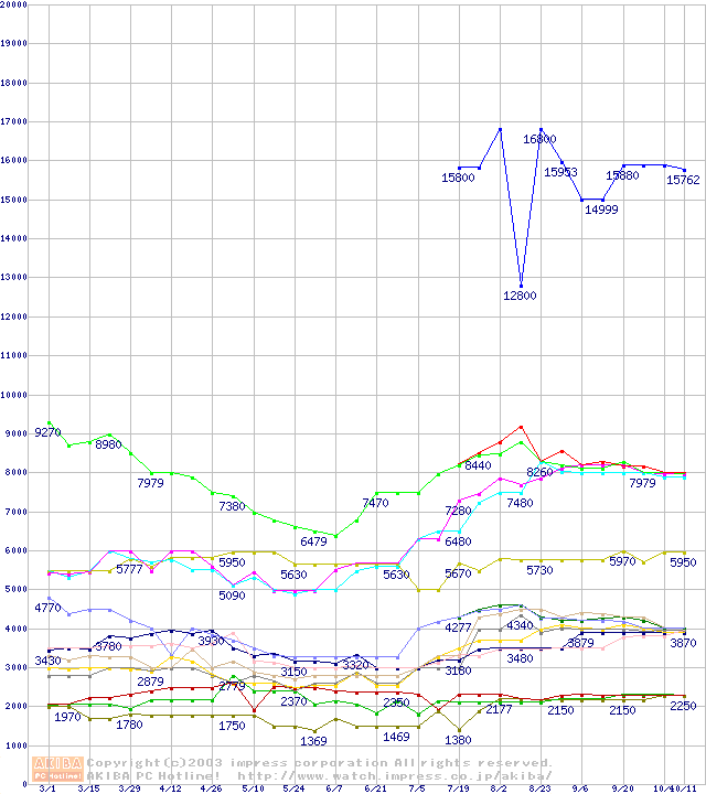 HDD 200GB以上(7200rpmクラス)の最安値推移
