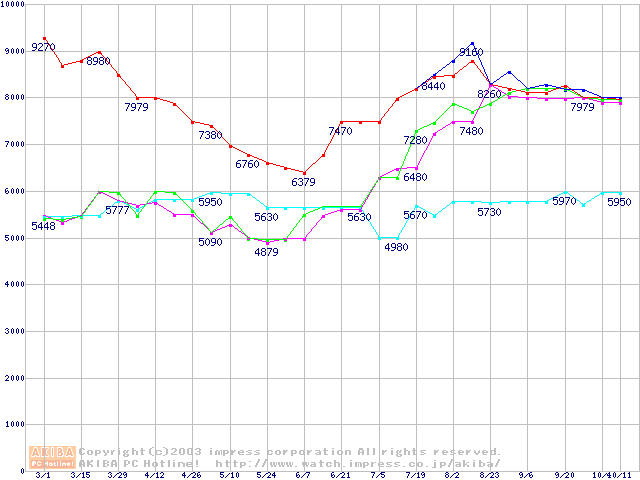 メモリ主要製品の最安値推移