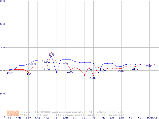 256MBモジュールの最安値推移