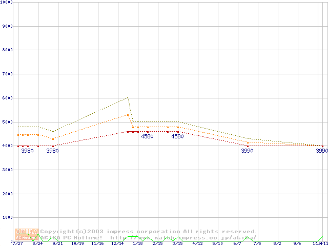 Socket 370 (PPGA,FSB 66MHz,L2 128KB,Mendocino)の最安値推移